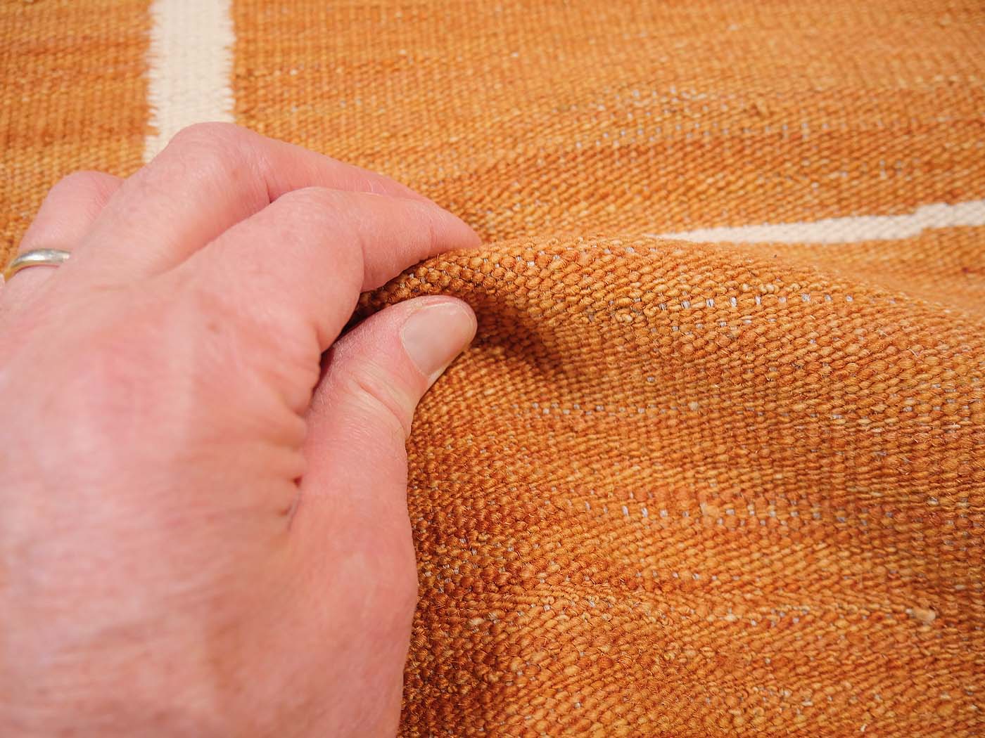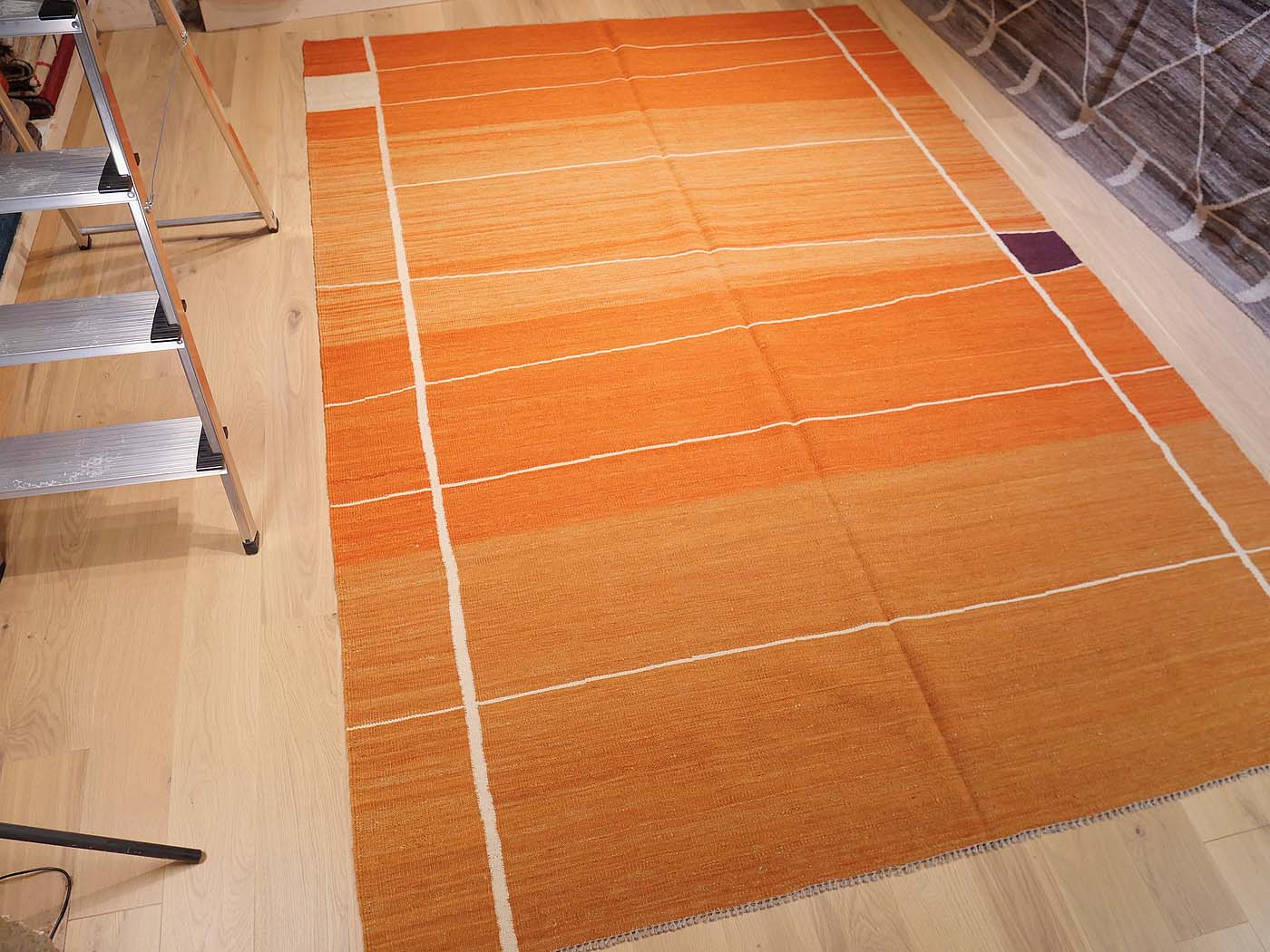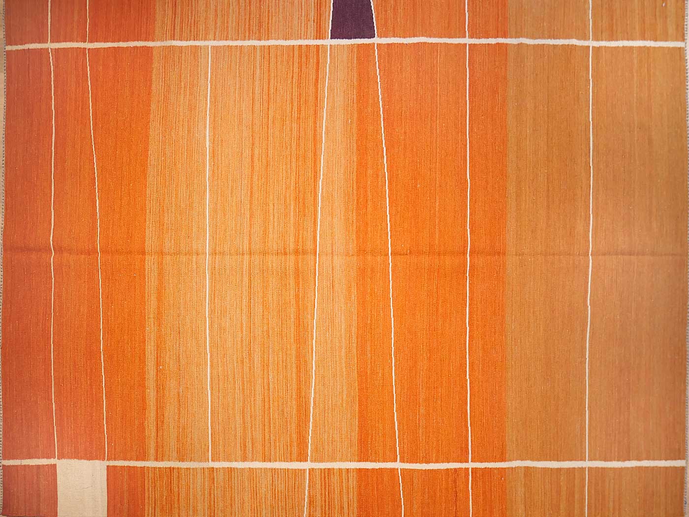 Ce tapis kilim fait main est tissé à plat selon une technique de tissage de tapisserie. Il est fabriqué exclusivement pour Nomade Kilim avec beaucoup de soin et d'attention aux détails. Nos nouveaux kilims s'inspirent des kilims anciens de Mazandaran tissés dans le nord de l'Iran, qui étaient pratiquement inconnus du commerce des tapis jusqu'à récemment et qui sont appréciés pour leurs motifs primitifs uniques et leurs combinaisons de couleurs minimalistes d'une grande beauté.