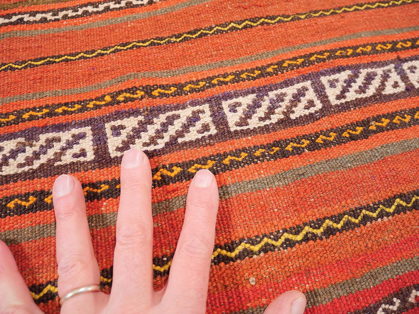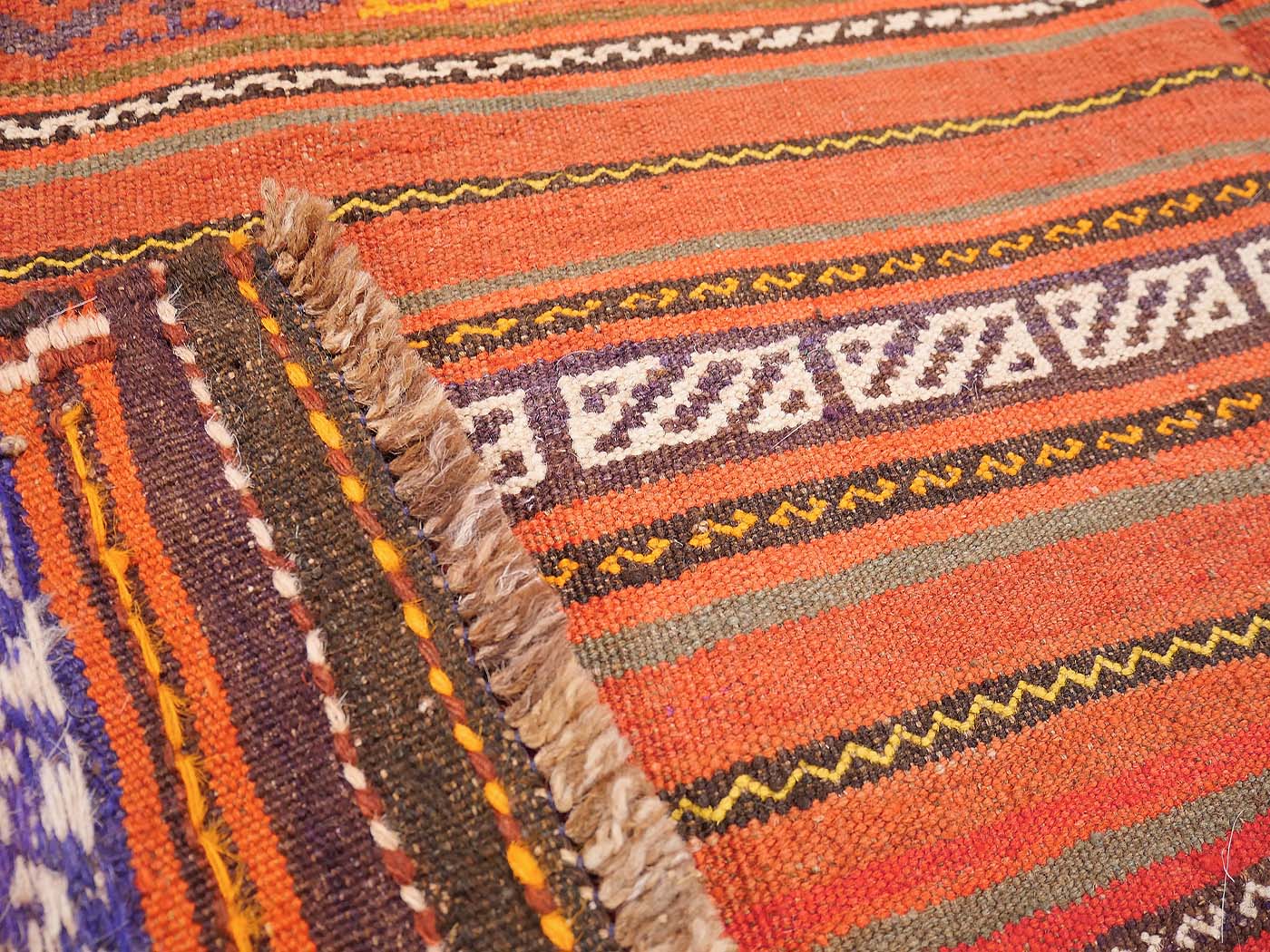 Ce tapis kilim vintage fait main est tissé à plat selon une technique de tapisserie et entièrement composé de laine. Il a au moins 50 ans. Les tapis kilim font partie de mes préférés, car je suis attiré par leurs motifs archaïques qui ont peu évolué au fil des siècles. Un véritable tapis kilim tribal, authentique et magnifique !
