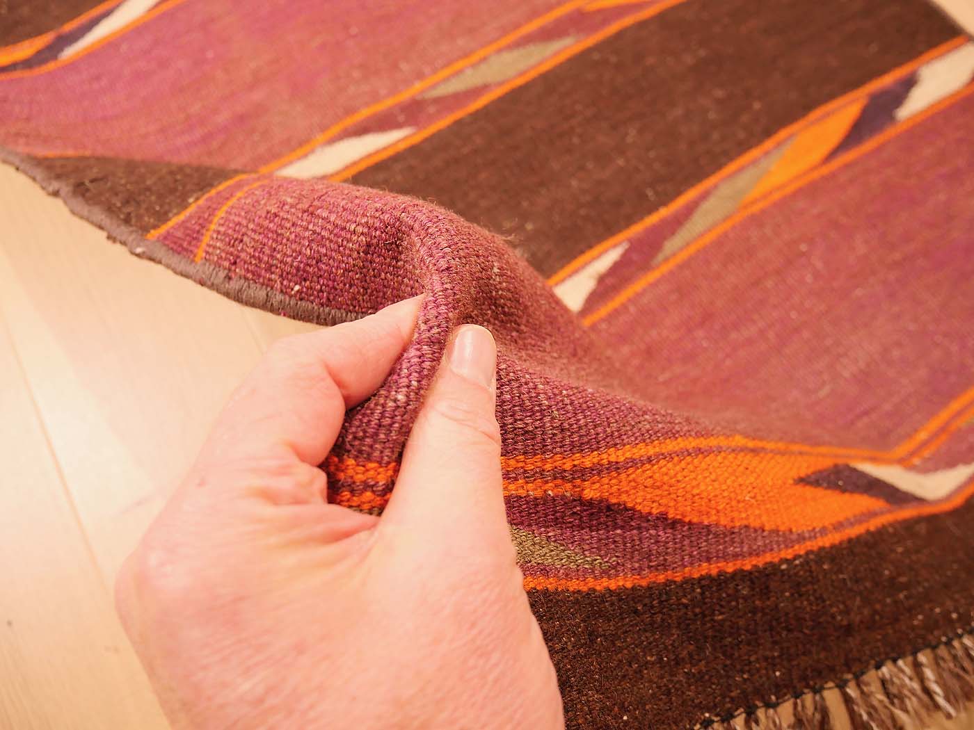 Ce tapis kilim vintage fait main est tissé à plat selon une technique de tapisserie et entièrement composé de laine. Il a au moins 50 ans. Les tapis kilim font partie de mes préférés, car je suis attiré par leurs motifs archaïques qui ont peu évolué au fil des siècles. Un véritable tapis kilim tribal, authentique et magnifique !