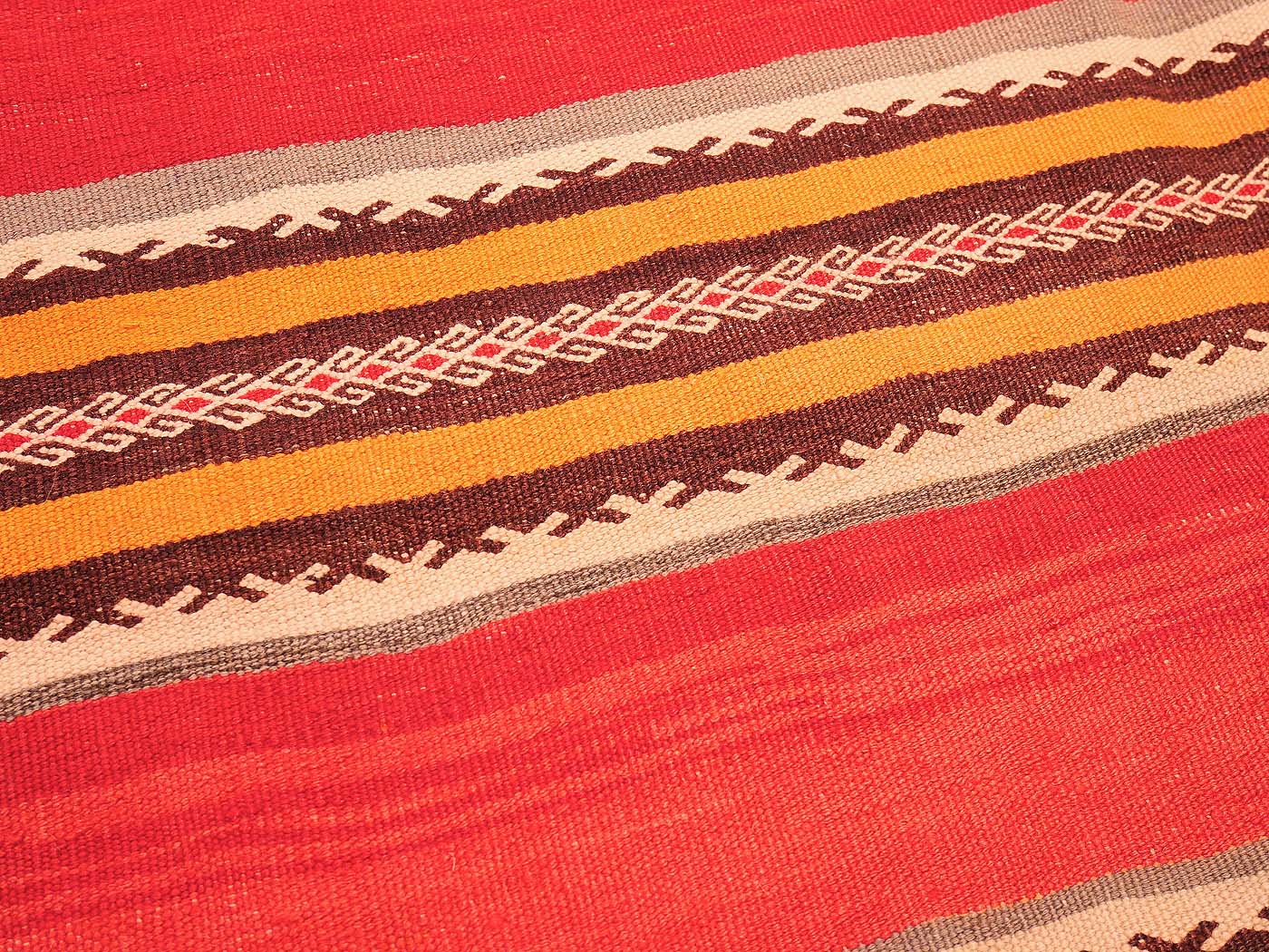Ce tapis kilim vintage fait main est tissé à plat selon une technique de tapisserie et entièrement composé de laine. Il a au moins 50 ans. Les tapis kilim font partie de mes préférés, car je suis attiré par leurs motifs archaïques qui ont peu évolué au fil des siècles. Un véritable tapis kilim tribal, authentique et magnifique !