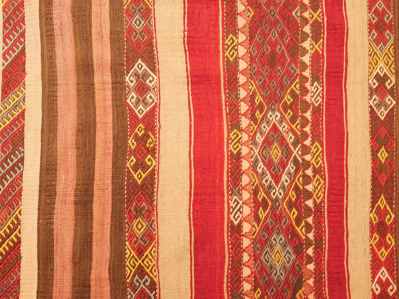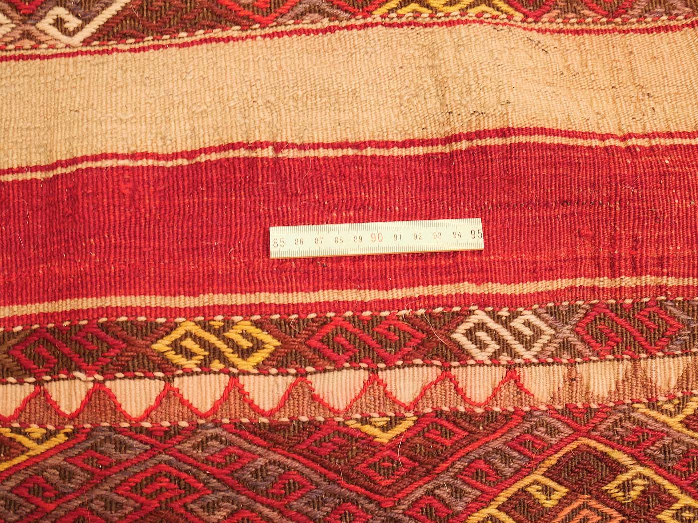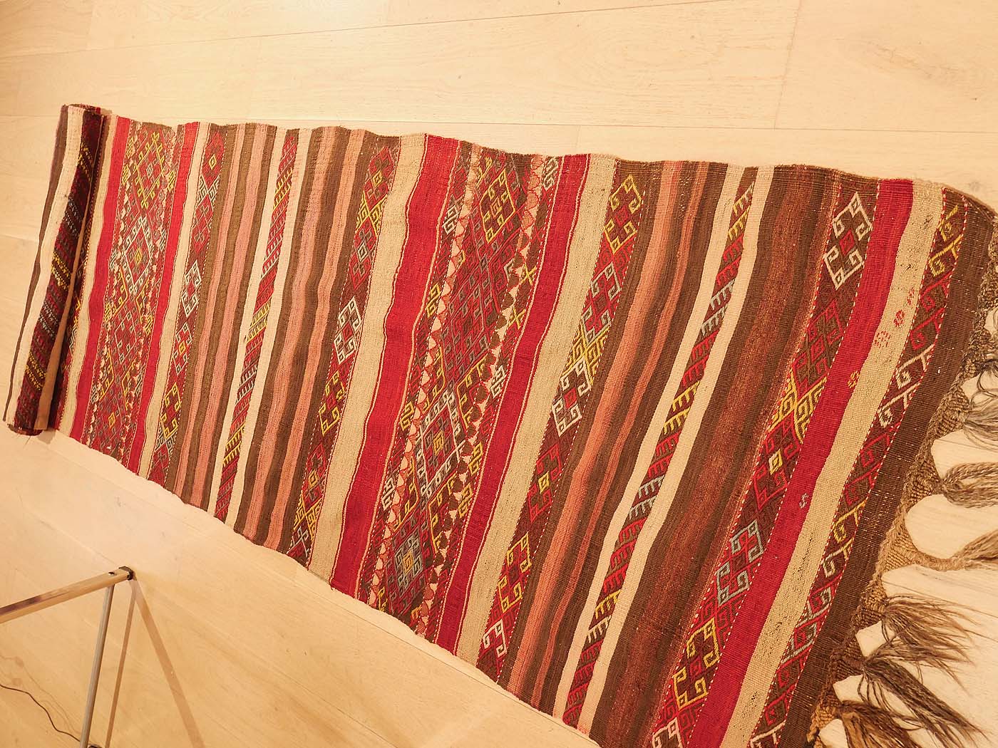 Ce tapis kilim vintage fait main est tissé à plat selon une technique de tapisserie et entièrement composé de laine. Il a au moins 50 ans. Les tapis kilim font partie de mes préférés, car je suis attiré par leurs motifs archaïques qui ont peu évolué au fil des siècles. Un véritable tapis kilim tribal, authentique et magnifique !