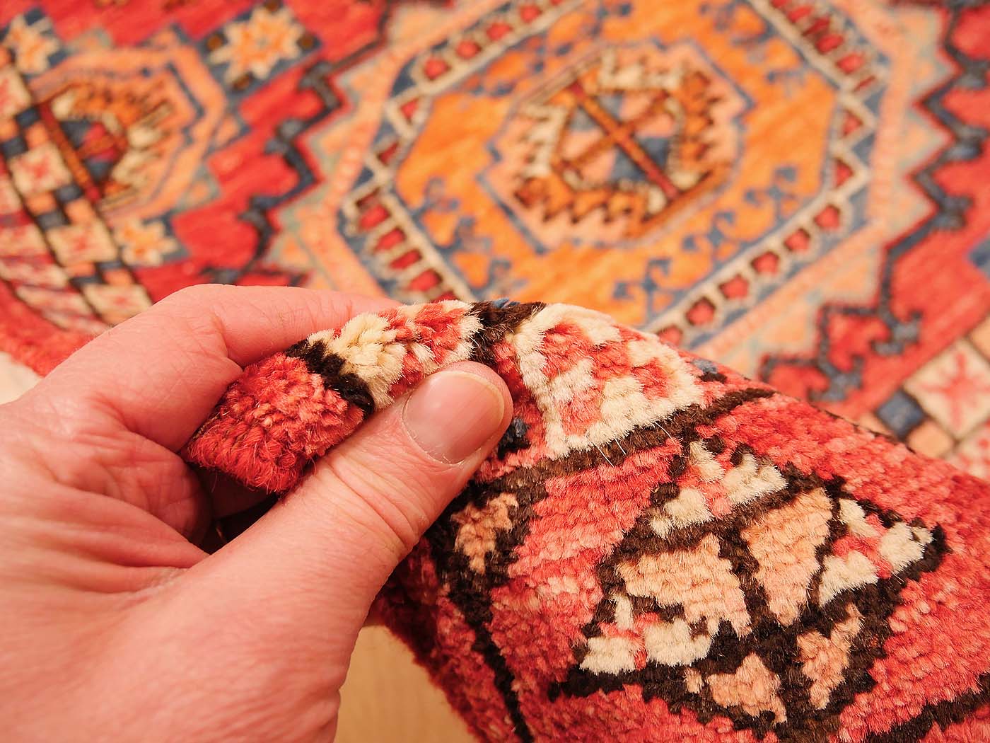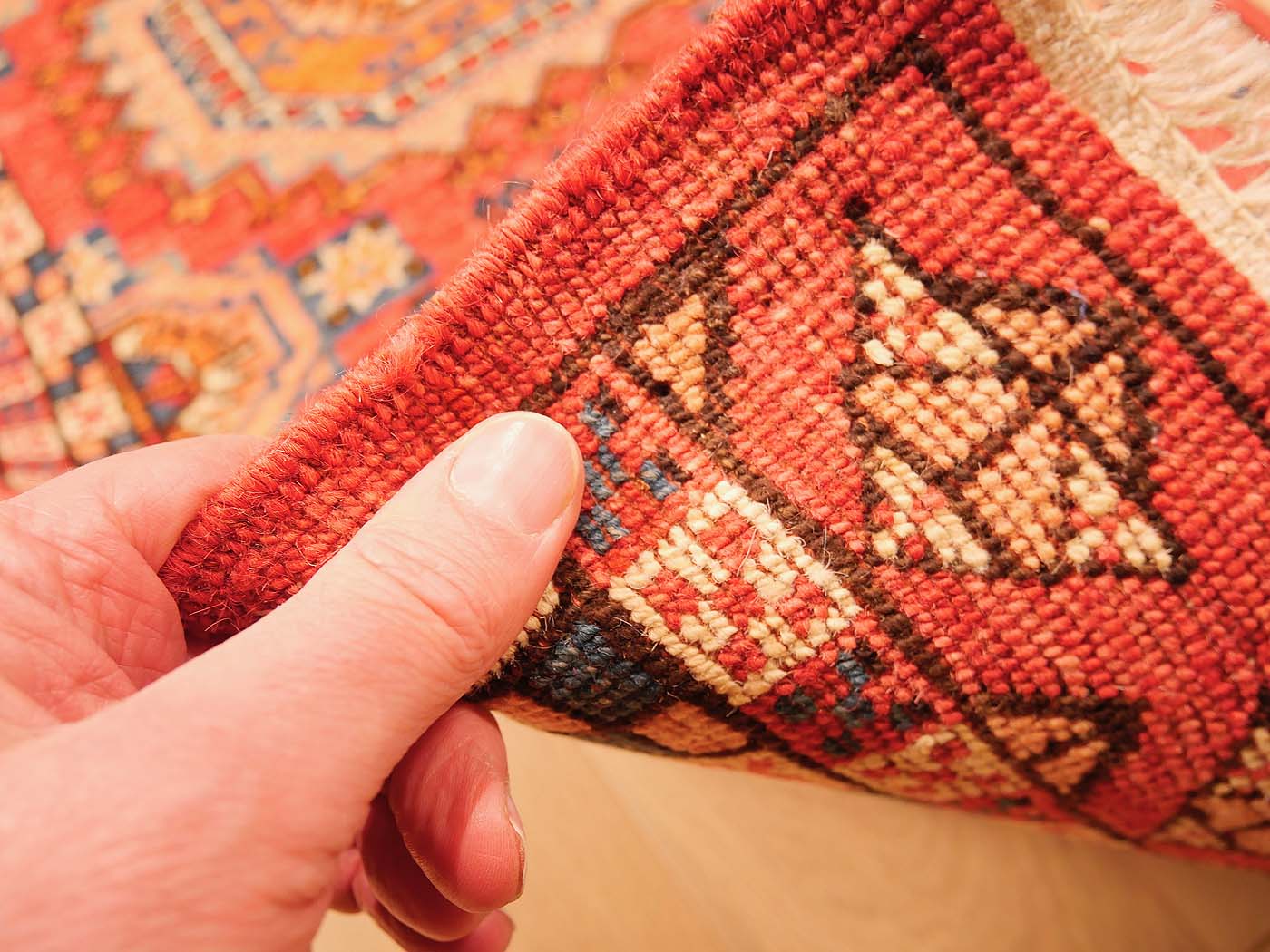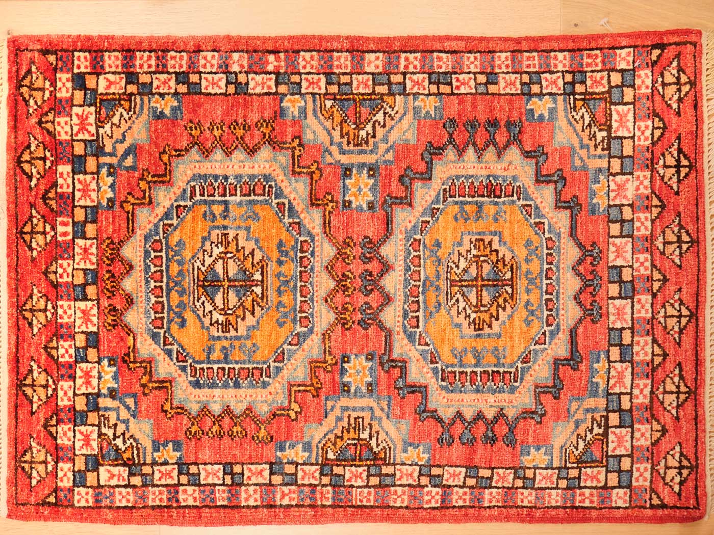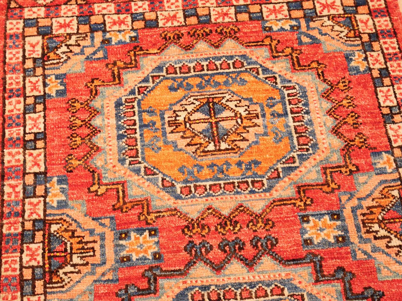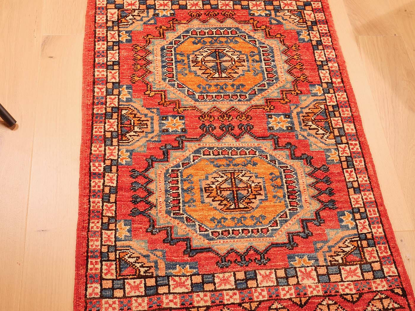 Tapis à poils noués à la main, fabriqué à partir de teintures naturelles et de laine filée à la main. Ce tapis est finement noué. Le tissage est réalisé dans le nord de l'Afghanistan, où l'art du tissage se transmet de mère en fille avec le plus grand respect, dans les maisons familiales individuelles. Ce tapis a été conçu et tissé en collaboration avec Nomade Kilim et est entièrement fait à la main.