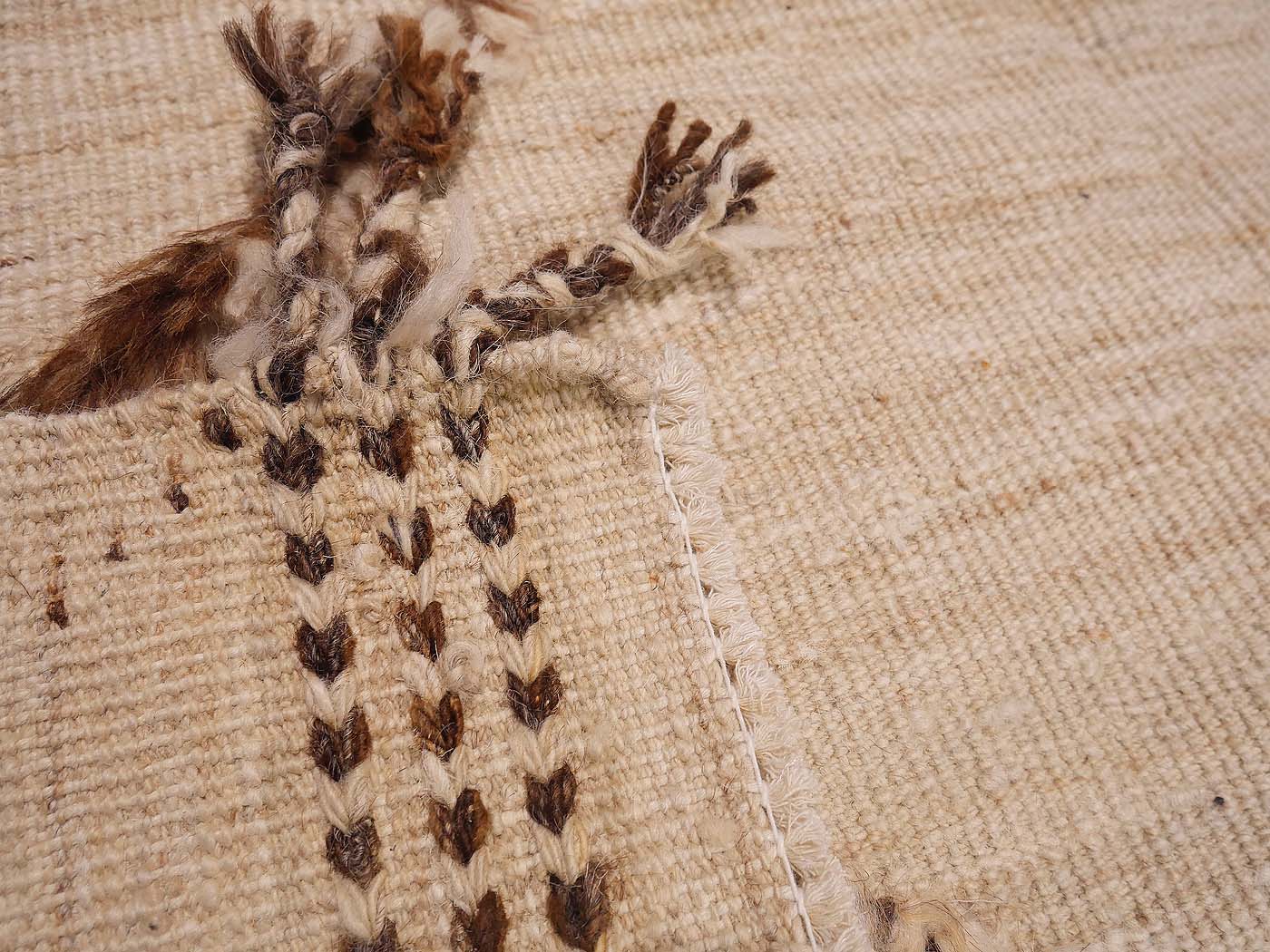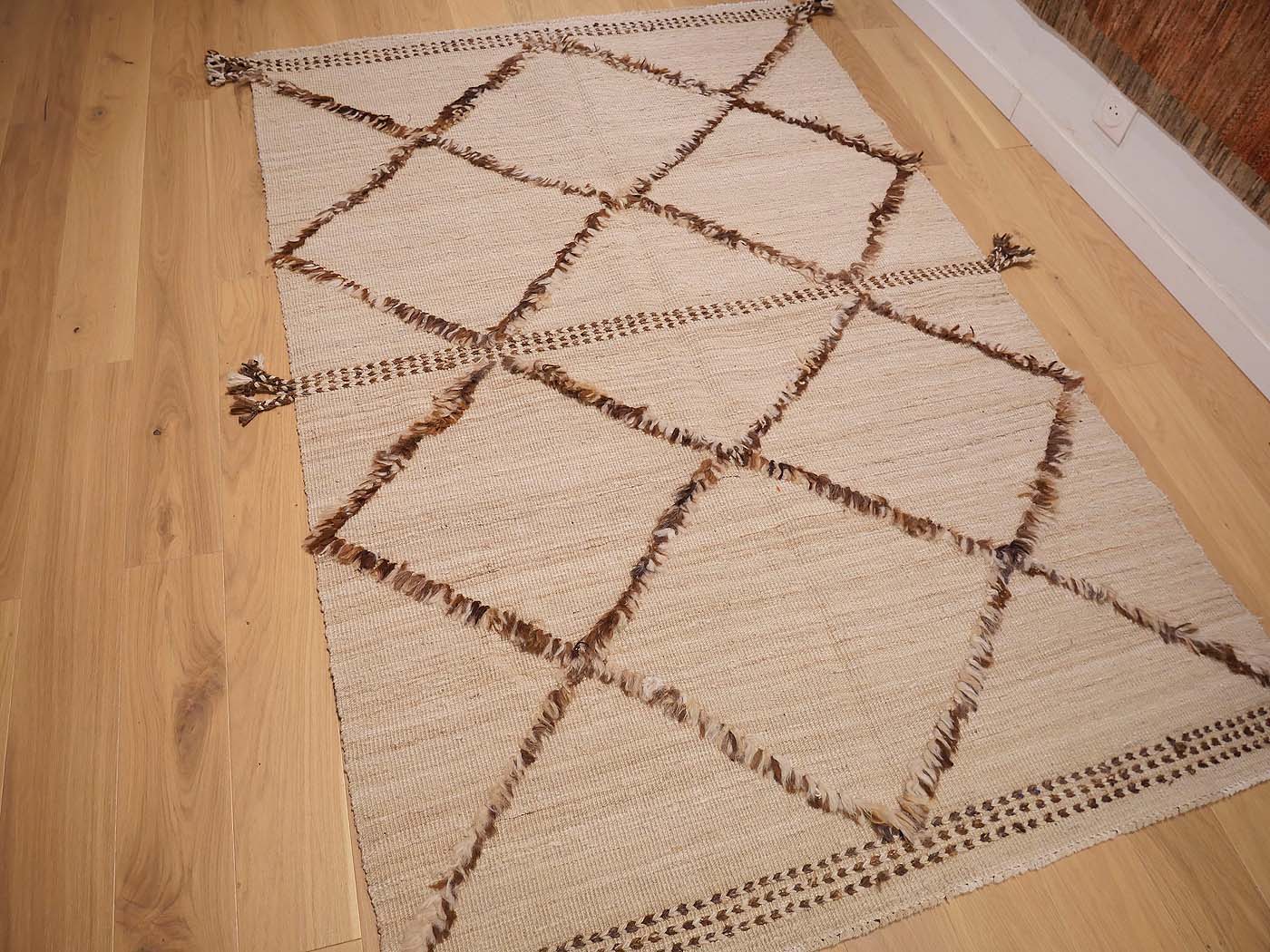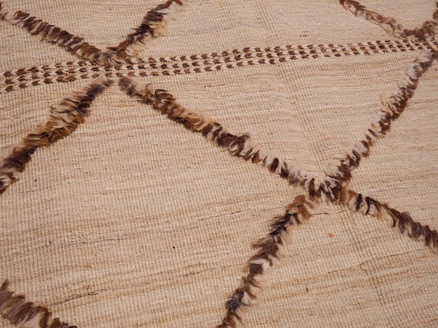 Tapis à poils noués à la main et tissage kilim dans ce textile à tissage mixte. Les nœuds texturés associés au tissage kilim lui confèrent un aspect magnifique et une touche « tribale moderne ». Nomade Kilim conçoit ces tapis en s'inspirant des textiles tribaux. Ajoutez une texture et un design uniques à votre intérieur, ainsi qu'une texture très douce sous les pieds. Entièrement fabriqué à la main.