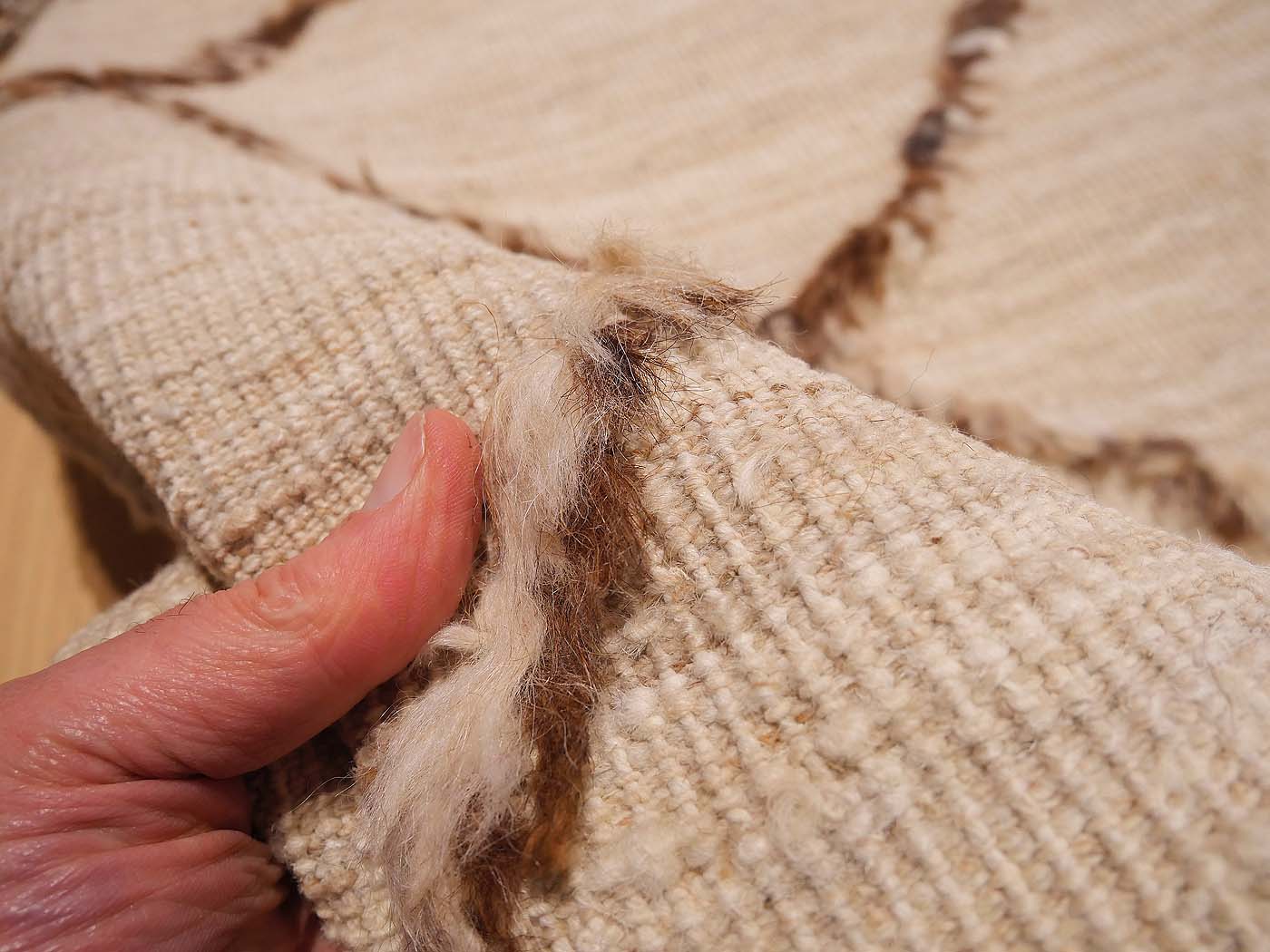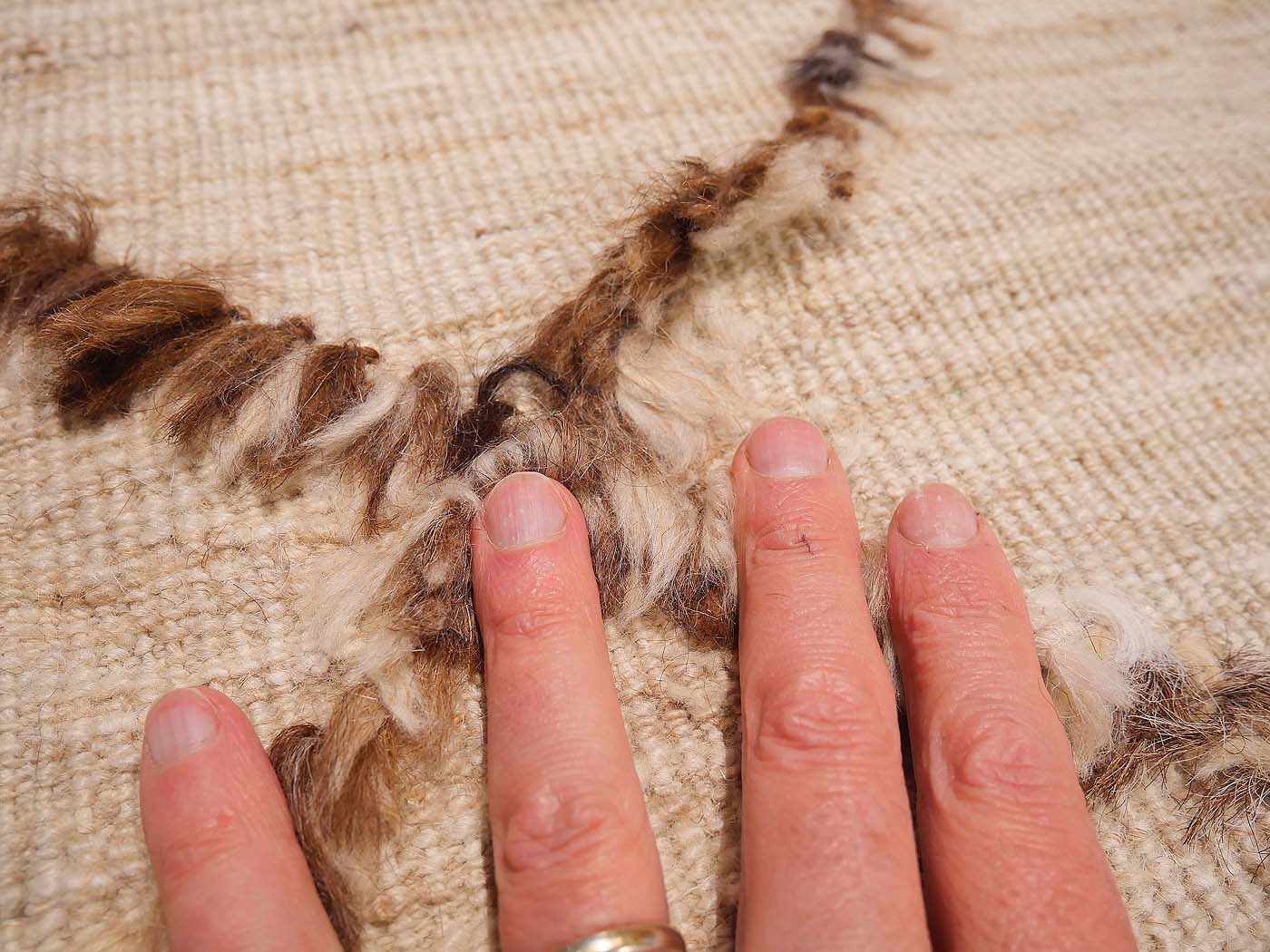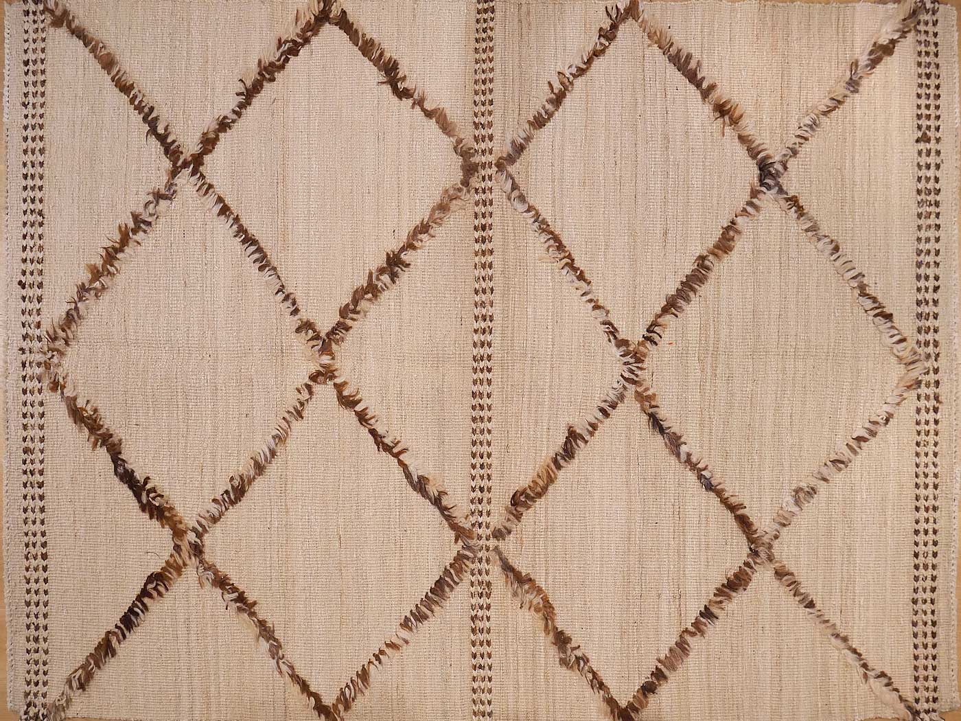 Tapis à poils noués à la main et tissage kilim dans ce textile à tissage mixte. Les nœuds texturés associés au tissage kilim lui confèrent un aspect magnifique et une touche « tribale moderne ». Nomade Kilim conçoit ces tapis en s'inspirant des textiles tribaux. Ajoutez une texture et un design uniques à votre intérieur, ainsi qu'une texture très douce sous les pieds. Entièrement fabriqué à la main.