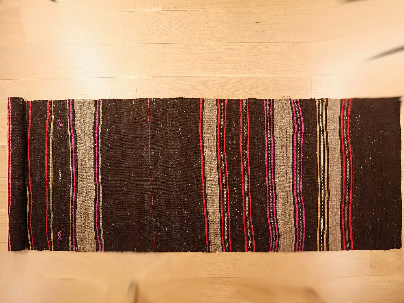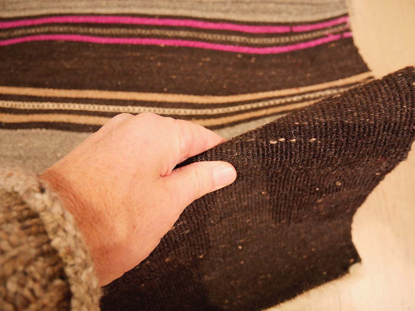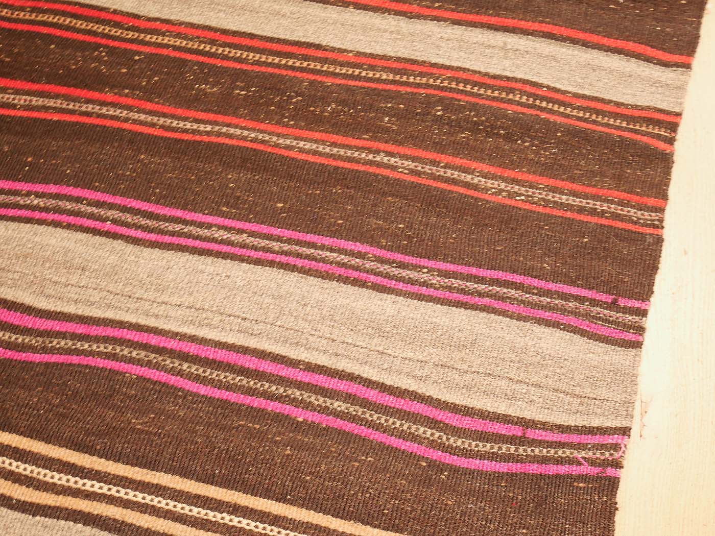 Ce tapis kilim vintage fait main est tissé à plat selon une technique de tapisserie et entièrement composé de poils de chèvre. Il a au moins 50 ans. Les tapis kilim font partie de mes préférés, car je suis attiré par leurs motifs archaïques qui ont peu évolué au fil des siècles. Un véritable tapis kilim tribal, authentique et magnifique !