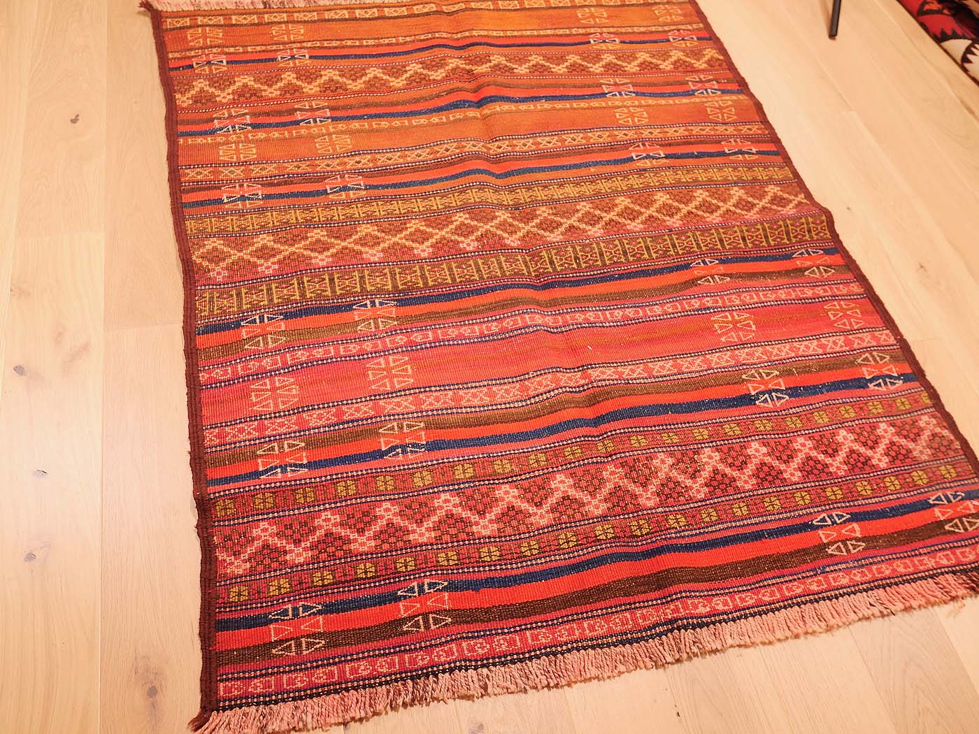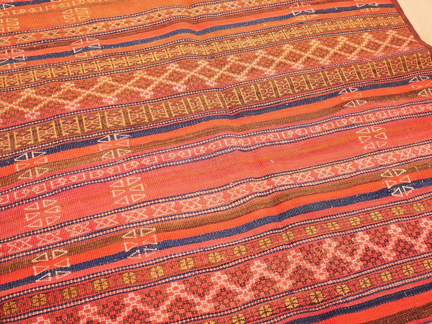 Ce tapis kilim vintage fait main est tissé à plat selon une technique de tapisserie et entièrement composé de laine. Il a au moins 50 ans. Les tapis kilim font partie de mes préférés, car je suis attiré par leurs motifs archaïques qui ont peu évolué au fil des siècles. Un véritable tapis kilim tribal, authentique et magnifique !